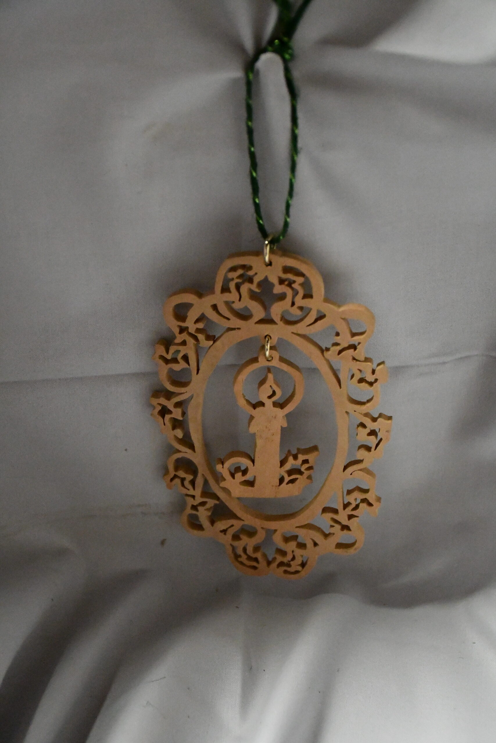 Celebrate the season with this intricate fretwork frame, highlighting a hanging candle.